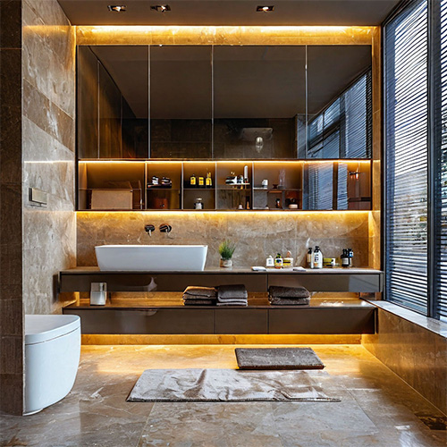 Мебель для спален и ванных комнат: тумбы под раковины и зеркала, шкафы для ванных принадлежностей, пуфы и стулья